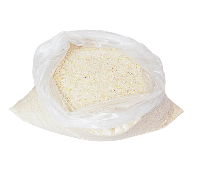 Мелкофракционный кварцевый песок упакован в пакет, защищающий песок от влаги и рассыпания, и коробку.