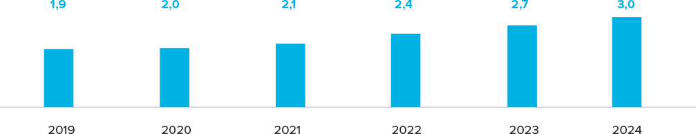 детей примут участие в открытых онлайн-уроках, реализуемых с учетом опыта цикла открытых уроков «Проектория», направленных на раннюю профориентацию, к концу 2024 г.