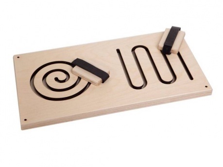 Задача весьма непростая, поскольку детям – при помощи рук или ног – предстоит пройти два разных лабиринта одновременно. Тренажер эффективно развивает моторику рук и ног и стимулирует работу левого и правого полушарий головного мозга.