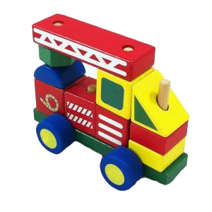 Конструктор состоит из неразборного основания на колесиках и набора деталей различной формы, которые устанавливаются на основании по принципу пирамидки (надеваются на деревянные штырьки). Из этих деталей получается красивая грузовая машина, которую можно катать.