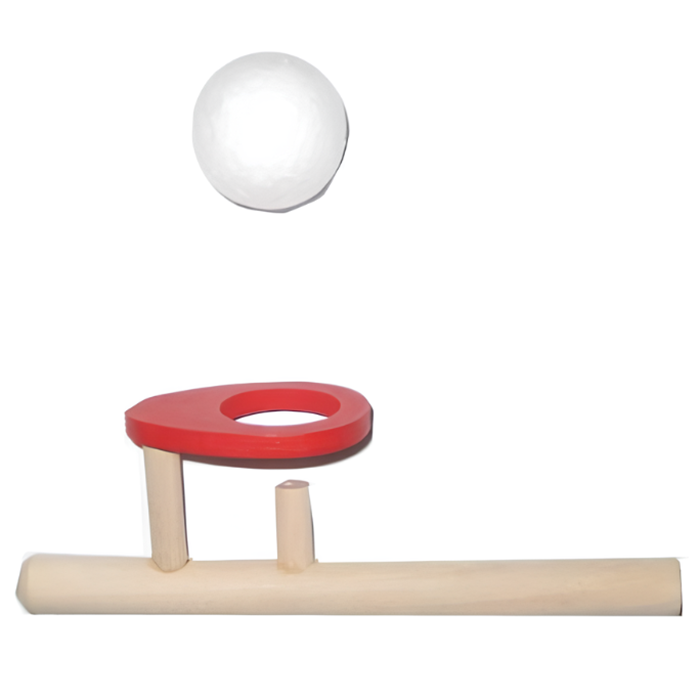 На кольцо устанавливается один из двух идущих в комплекте пенопластовых шарика. Когда игрок выдыхает в мундштук, шарик взлетает в воздух.