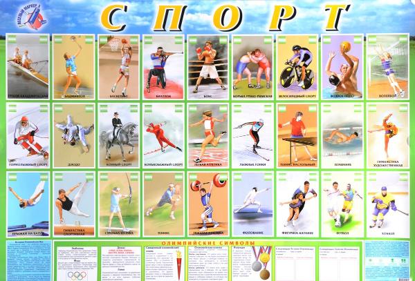 На плакате показаны некоторые олимпийские виды спорта, дана информация об истории и символах Олимпийских Игр.