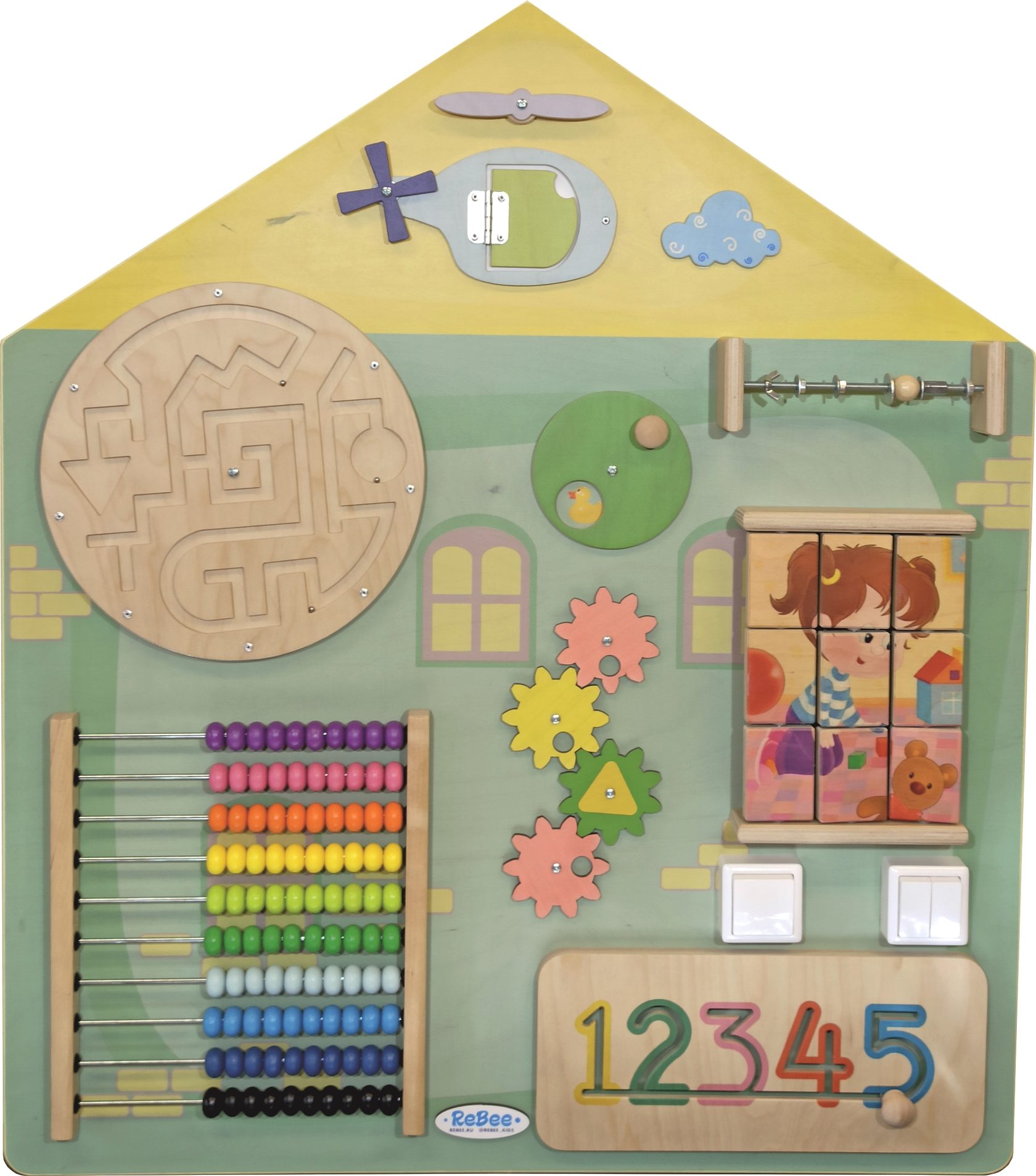 Игра с бизибордом способствует развитию мелкой моторики детских рук, развитию наглядно-образного и логического мышления, координации, запоминанию цветов и фактур, помогает ребёнку развивать причинно-следственные связи.