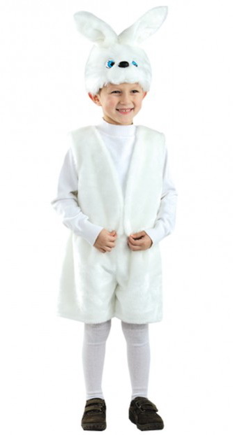 Карнавальный костюм Зайка белый для мальчика подойдёт для любых мероприятий, будь то театральное представление или костюмированная вечеринка.