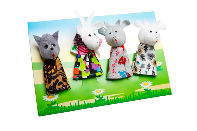 Персонажи, входящие в состав пальчикового театра «Волк и козлята», — волк, 3 козленка.