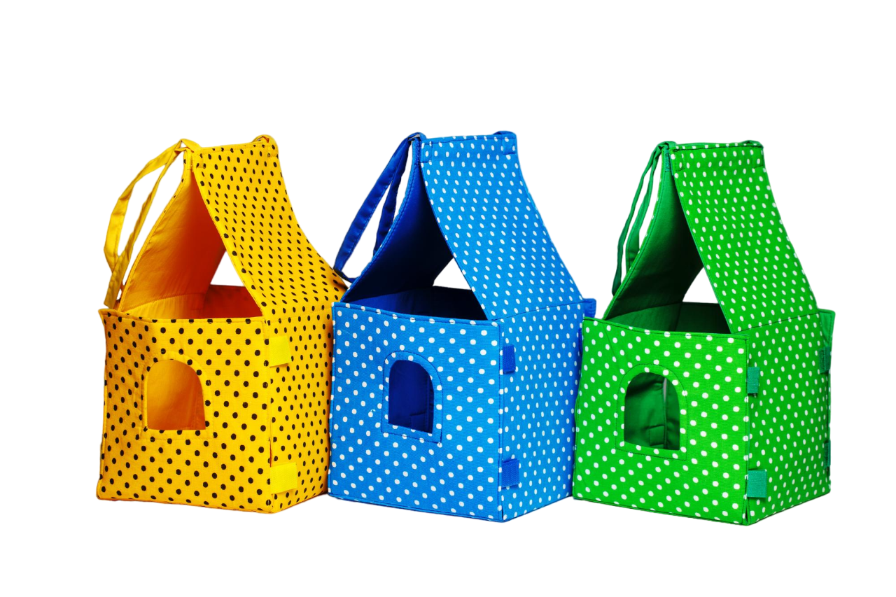 Мягкий разборный домик для хранения театральных игрушек, который можно использовать и в качестве декорации для постановок.